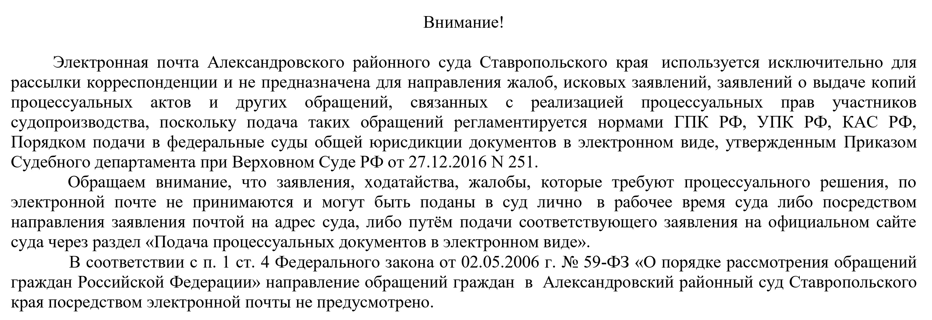 Адрес электронной почты aleksandrovsky.stv@sudrf.ru вновь возобновил работу